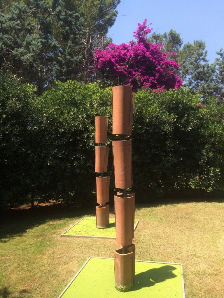Da qui si passa ad una ampia “stanza” a cielo aperto, le cui pareti circolari, costituite da un fitto pitosforo, delimitano un pezzo di prato che al centro accoglie una installazione dell’architetto: “le Columnarie”; oppure passare ad un piccolo agrumeto dai bassi rami carichi di zagara il cui intenso profumo si intreccia con la forte fragranza di un fioritissimo gelsomino a spalliera che ne delimita l’area.