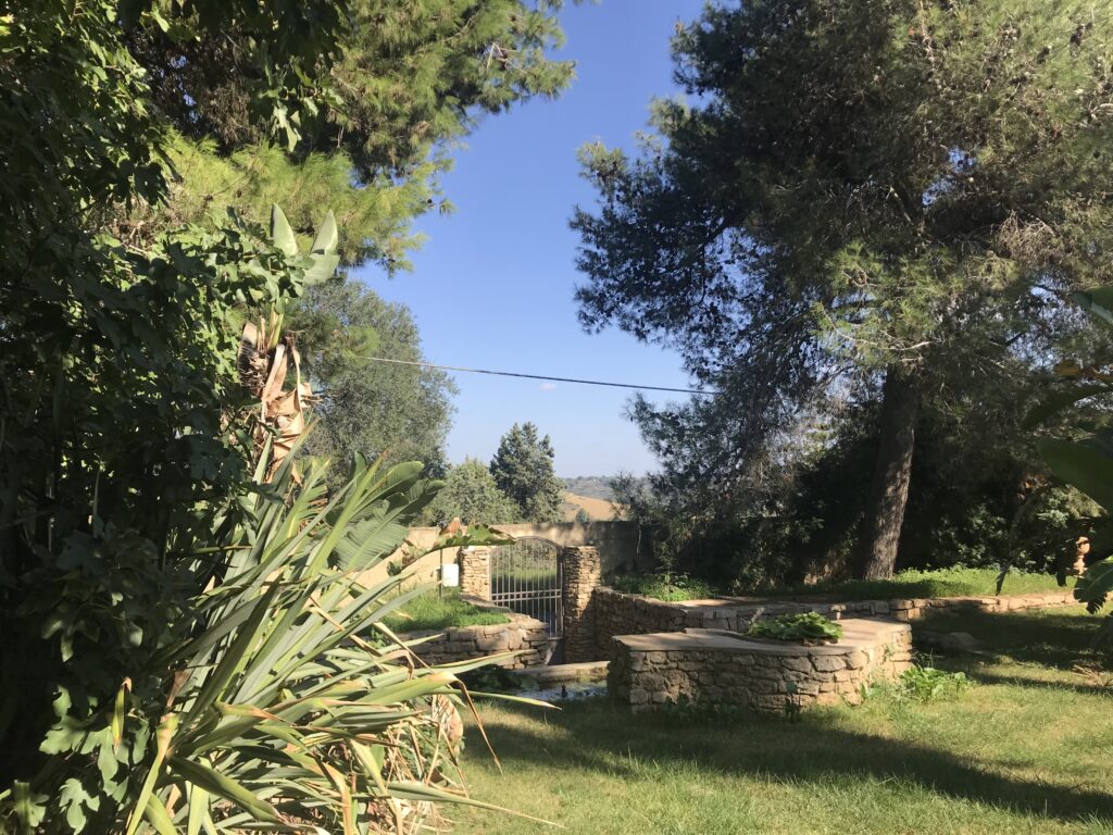 Nella parte digradante gli ulivi si alternano a cipressi e palme e nella zona più bassa la conformazione di questa parte del terreno ha suggerito l’inserimento di un doppio emiciclo di pietra a secco, delimitato da un semicerchio di palme; il tutto evoca l’immagine di un “teatrino di verzura” di arcadica memoria. Il viale affiancato da ulivi che conduce dal cancello inferiore d’ingresso alla casa termina con il ‘cortile delle palme’ chiuso su tre lati da una parete di fitti cipressi.Qui, l’architettura e la natura si fondono, dando vita a uno spazio dove la mente trova riposo e il corpo ritrova il proprio equilibrio.